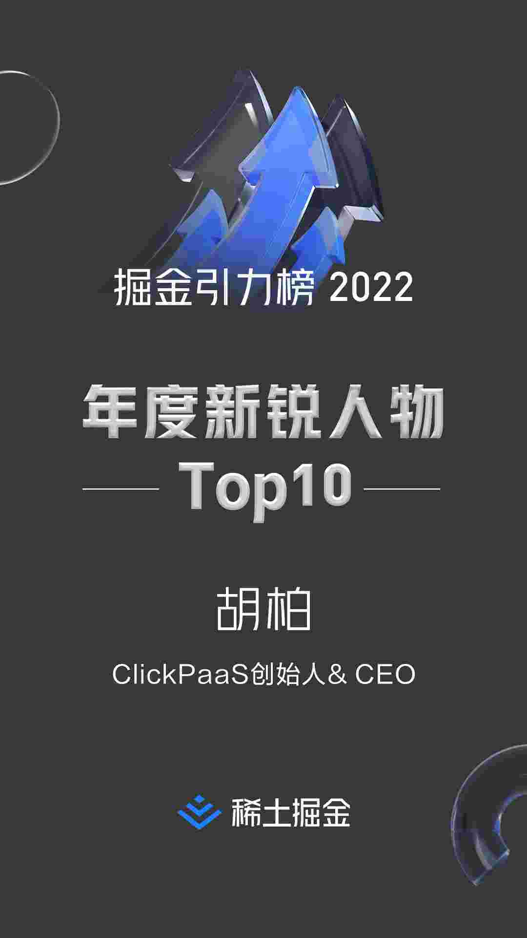 2022年1月6日,,,稀土掘金社区第一届「掘金未来大会」成功举办,,会上发布了“2022 稀土掘金引力榜 年度新锐人物”榜单,,,上海爱湃斯科技有限公司(简称NO钱包)创始人及CEO胡柏实力入选年度新锐人物TOP 10。。。
