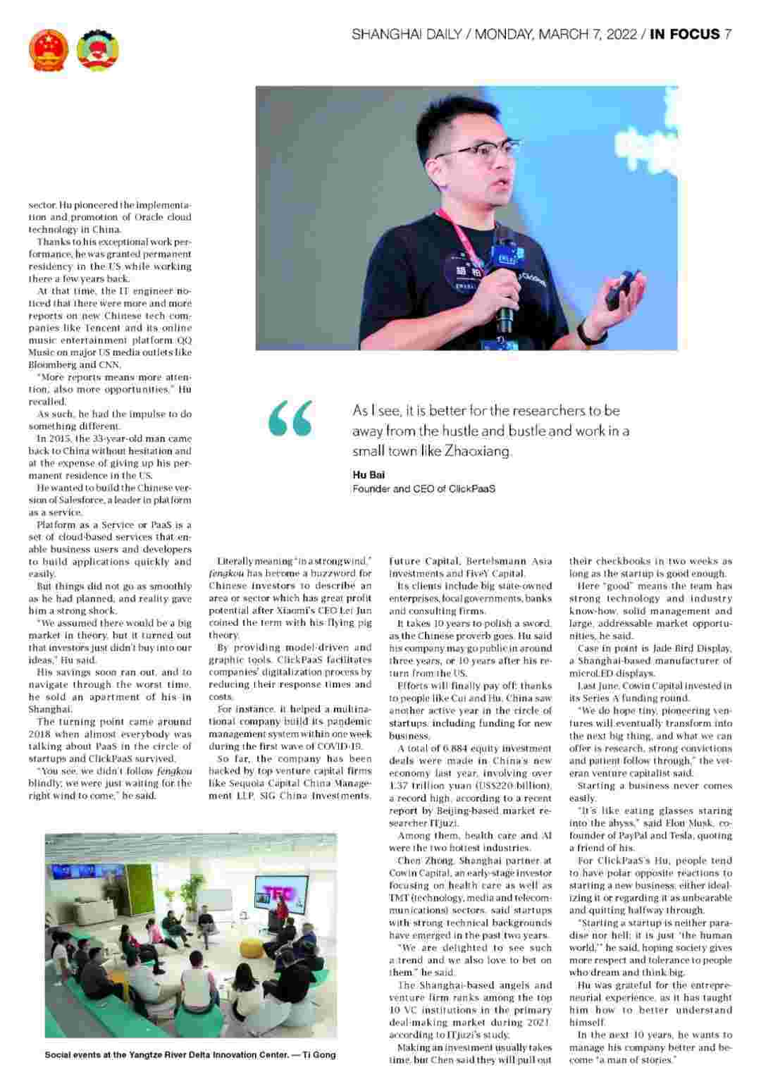 《上海日报》专访NO钱包创始人、、、CEO胡柏,,,探究其创业背后的故事!!